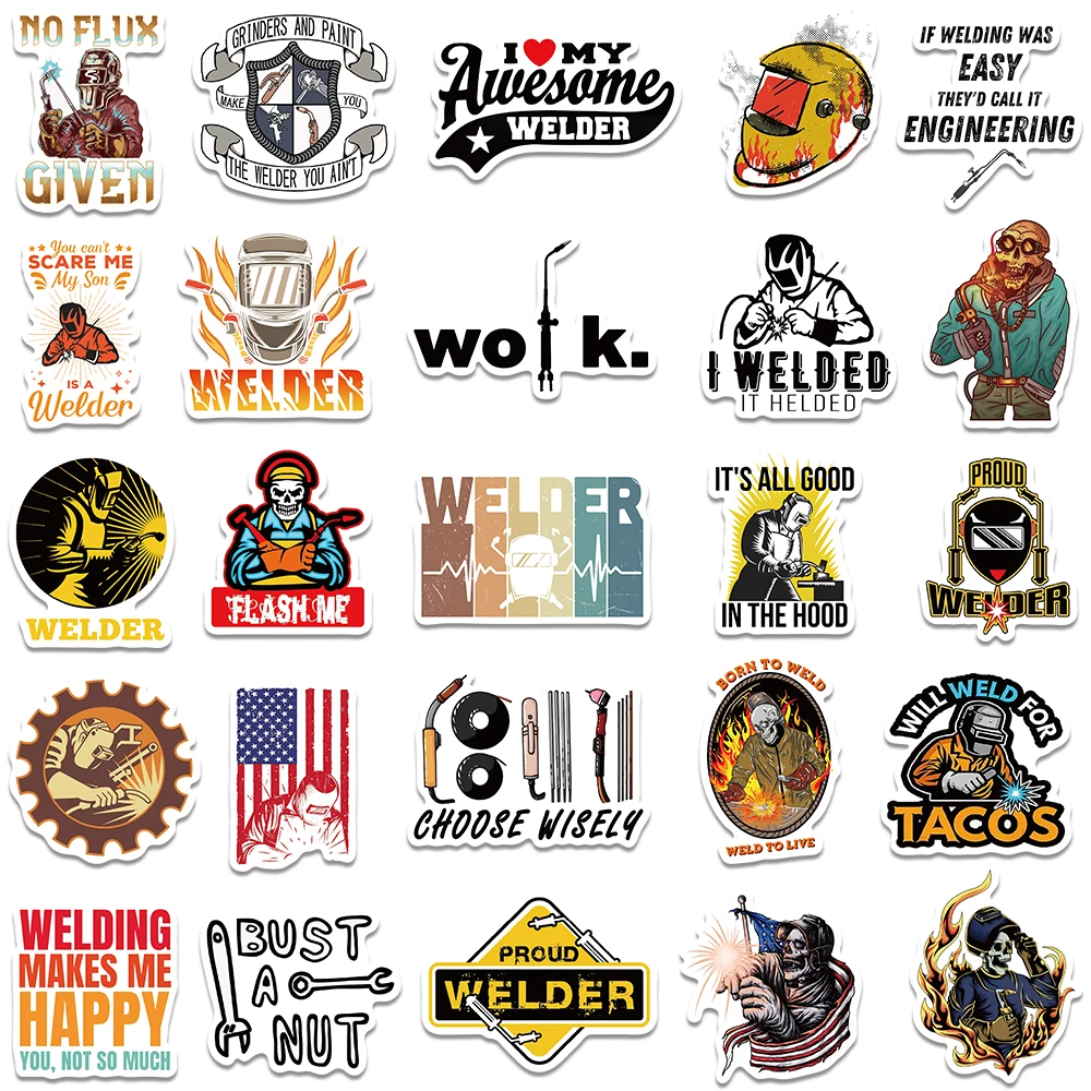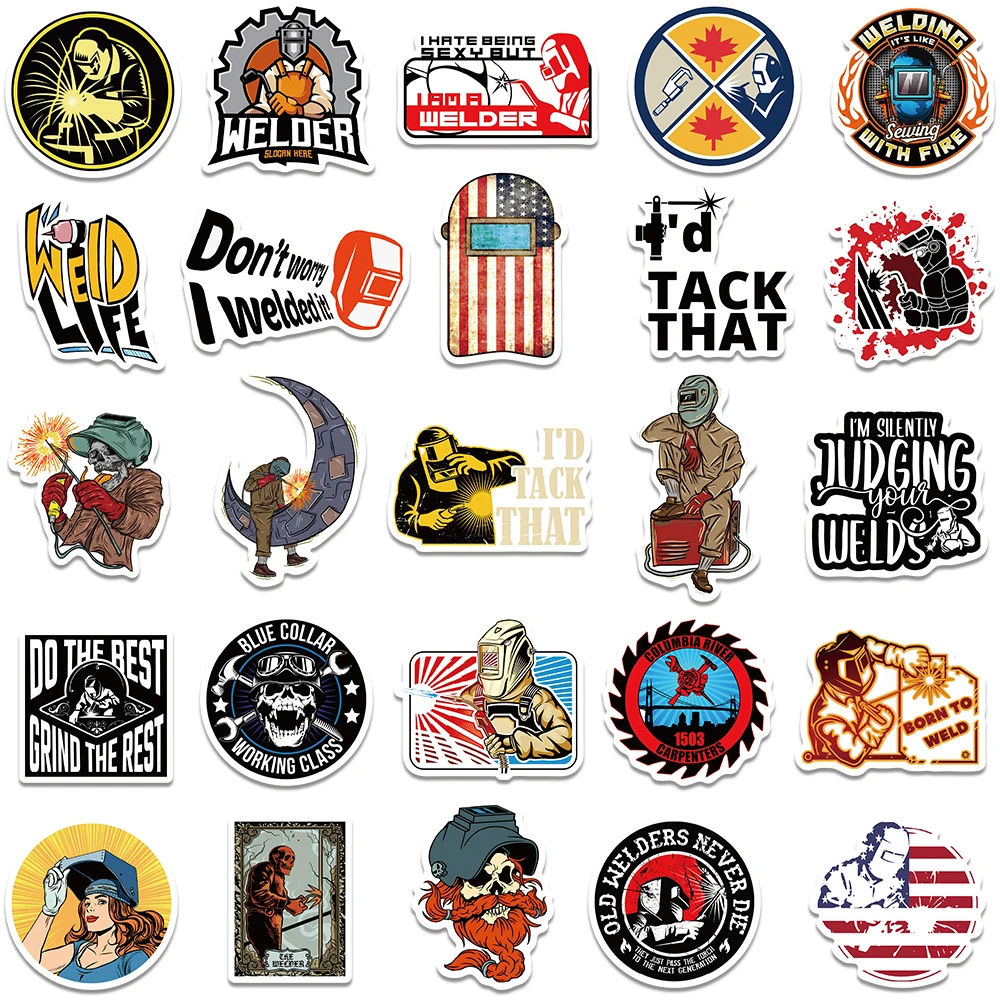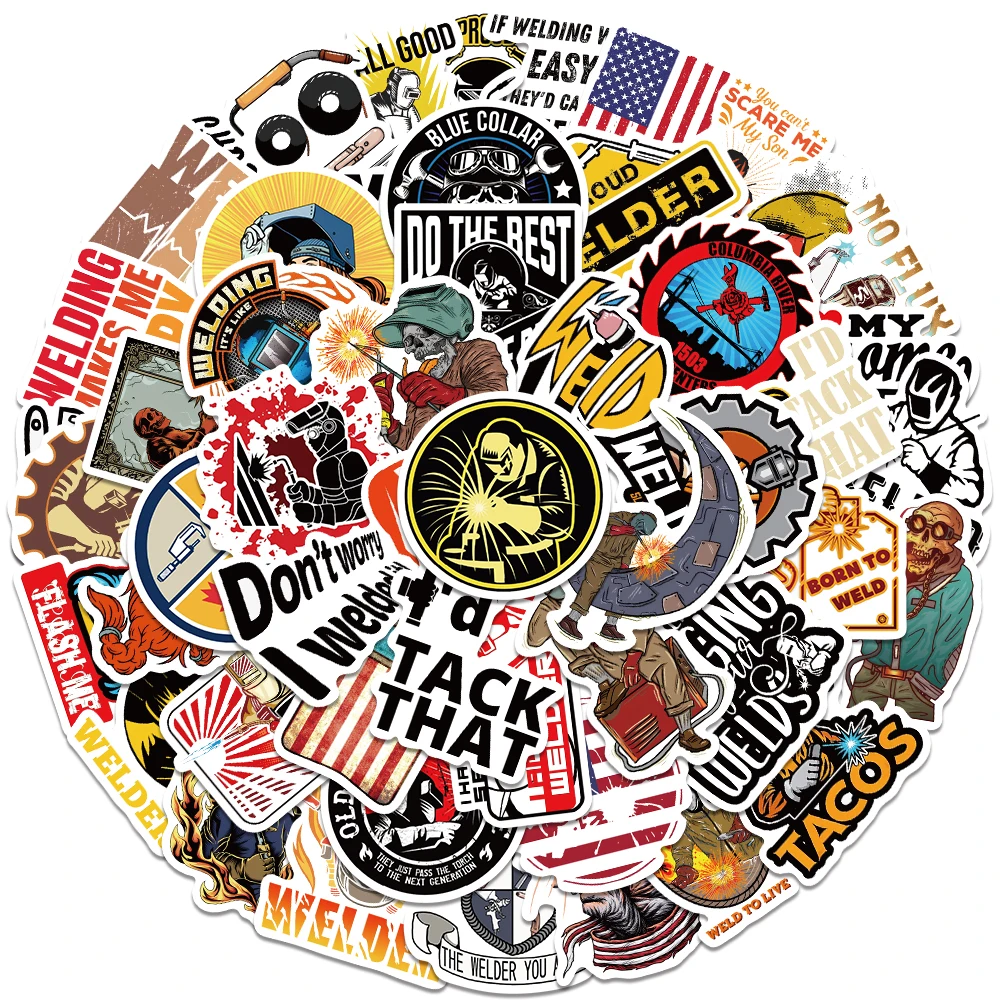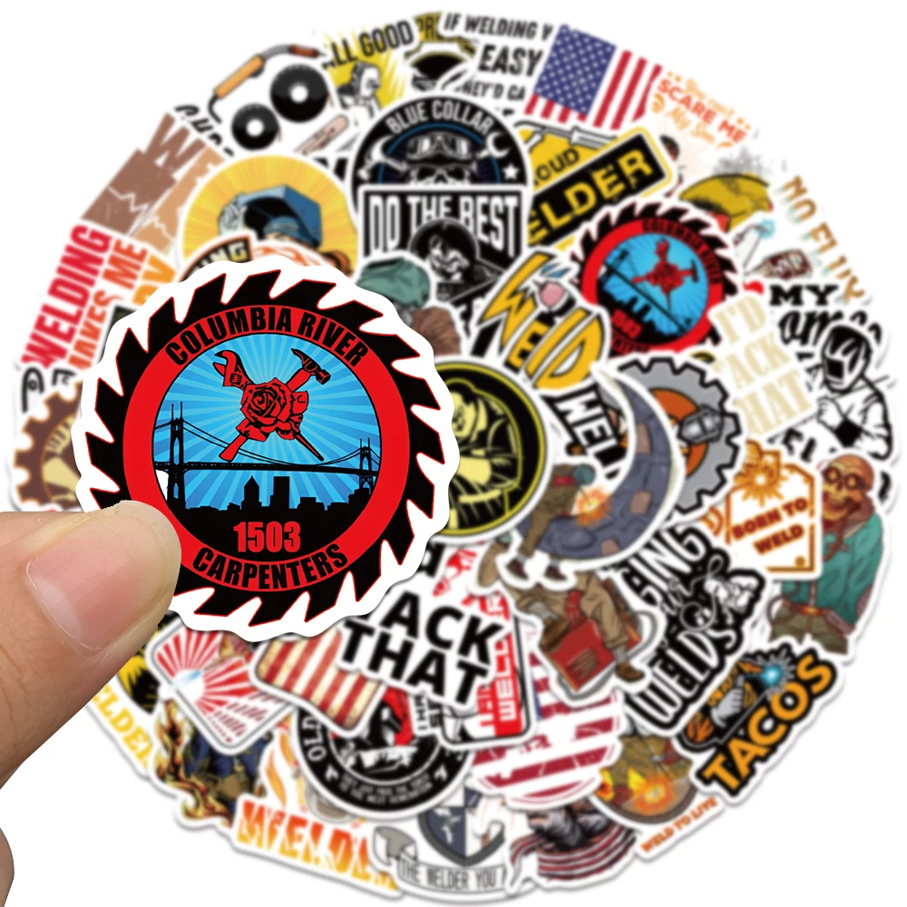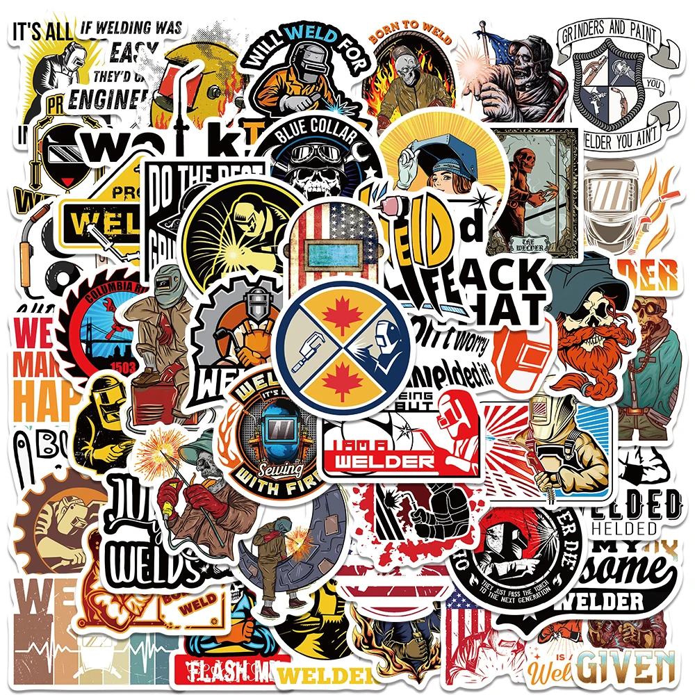 50PCS Welding Workers Funny Stickers Cartoon Graffiti Stickers Fashion Luggage Skateboard Waterproof Stickers Car Styling Decals